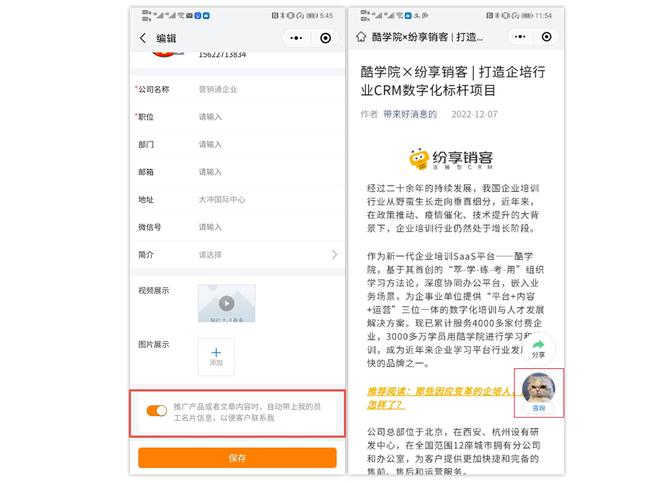 10.内容中心-支持员工设置是否在文章产品中展示名片信息