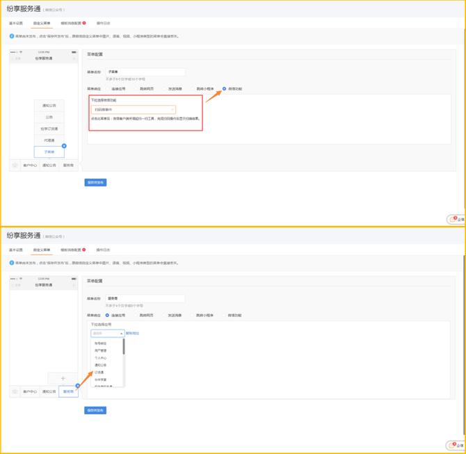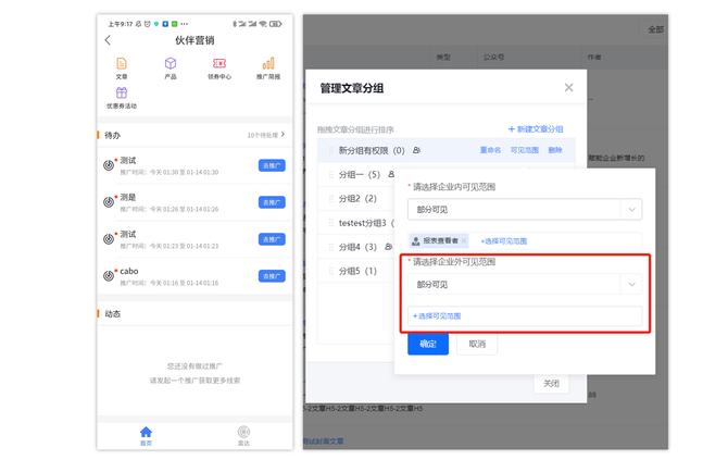 企微营销移动端物料类型(直播、会议、文章、产品等)支持显隐、排序、重命名。