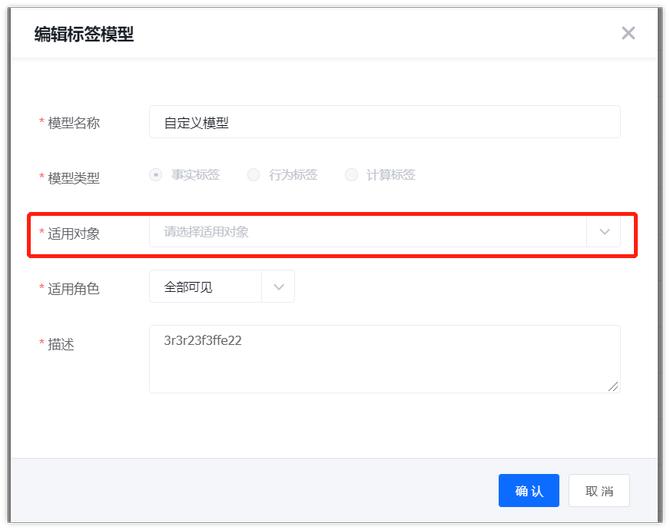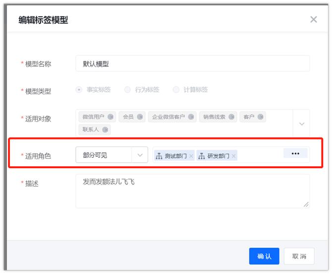 目标人群>标签画像>用户标签管理>标签编辑,标签模型分组支持按部门设置权限。