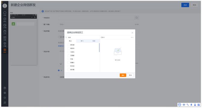 2.企微营销-企微群发支持按员工部门、员工标签筛选