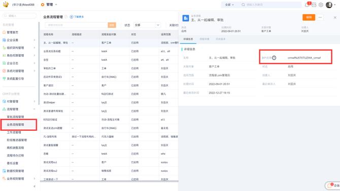 - 点击查看业务流定义时,展示出此流程的APIname。