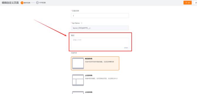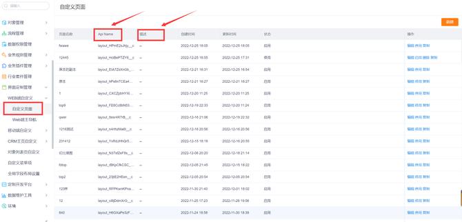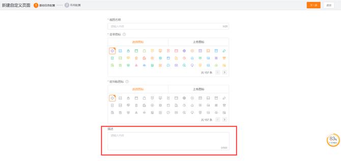 在WEB&移动端自定义页面新建/编辑时、列表页增加“描述”填写,可对该页面进行详细描述,便于后期维护。