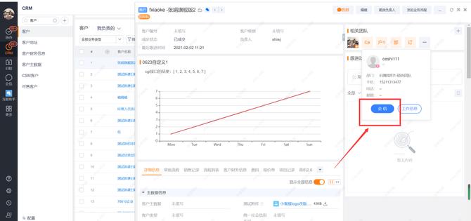 (2)SFA关系人脉雷达组件,点击事件可发送企信,进入企信聊天窗口,且支持带入相关客户信息卡片。