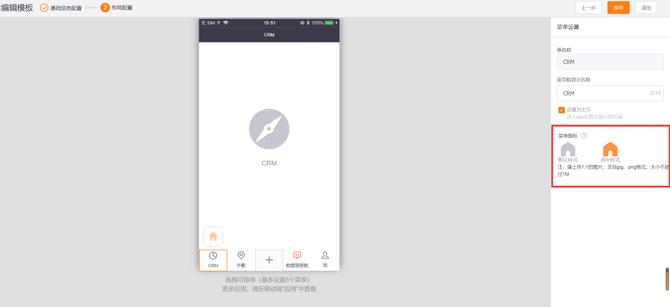 - 在APP主导航中可以选择PaaS应用的系统图标或本地上传图片,放入APP主频道。