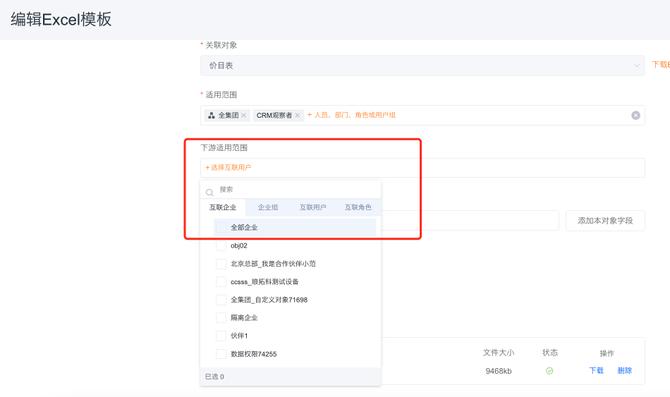 在word、Excel、PDF打印模版下,适用范围支持选择下游人员。