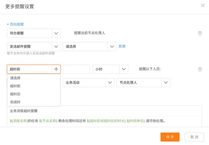 - 业务节点,更多提醒设置—待办提醒时,支持配置多个待办提醒;