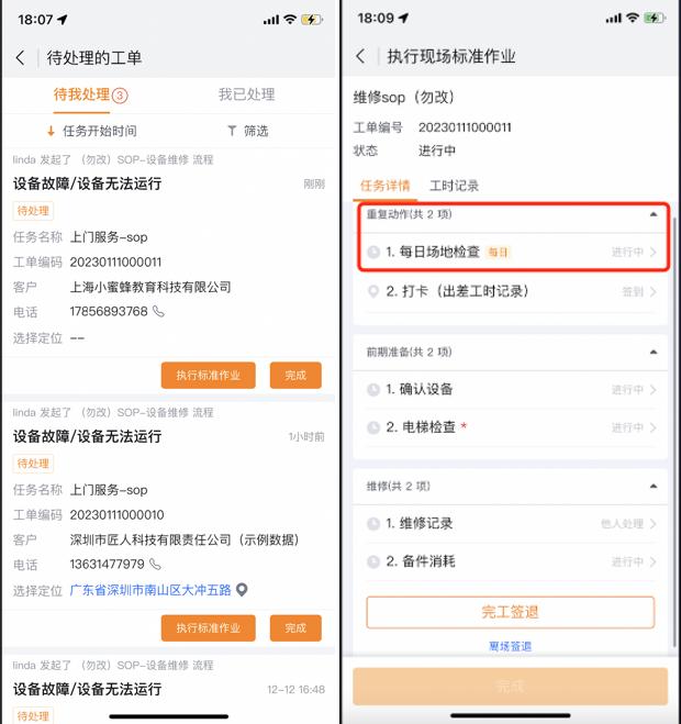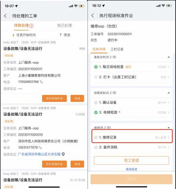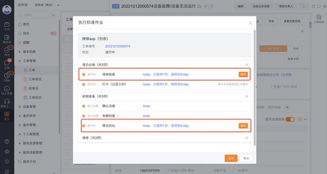 现场标准作业执行,允许设置工程师和协同工程师多人协作执行。