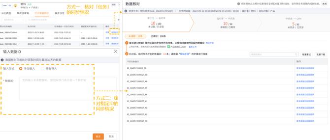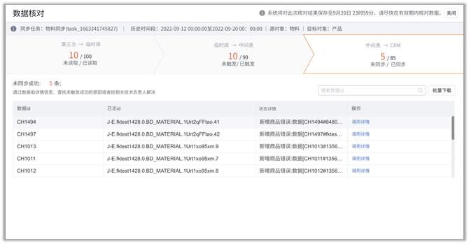 核对<任务>的同步情况;核对指定ID的同步情况。
