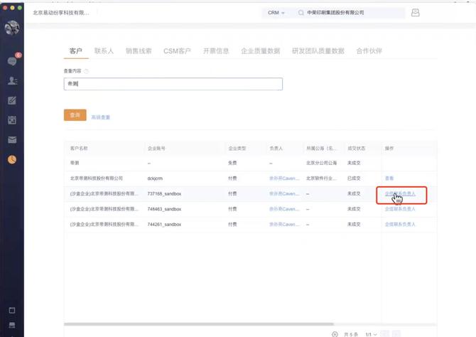 (1)在查重工具,操作按钮“企信联系负责人”,点击后可进入企信聊天窗口,且支持带入相关客户信息卡片。