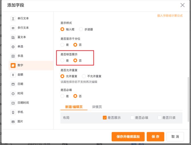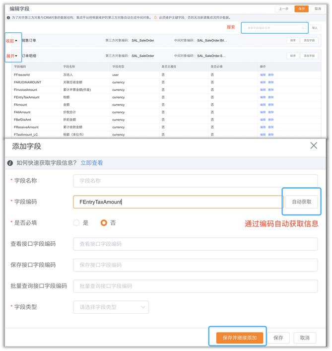 字段管理增加搜索、通过编码获取信息、保存并继续功能,修复修改字段对排序的影响,优化展示布局。