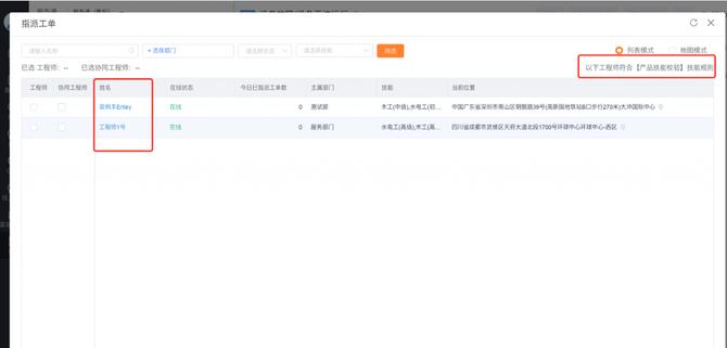 新增按技能规则校验,支持协同工程师技能校验,在派单/自动派单可以校验并筛选出符合技能要求的工程师。