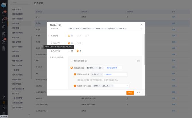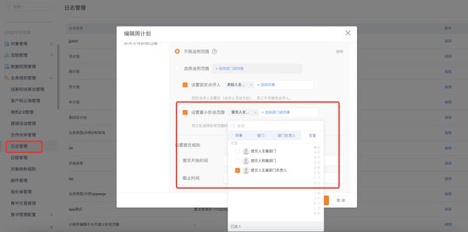 日志抄送范围的配置,支持提交人主属部门负责人。