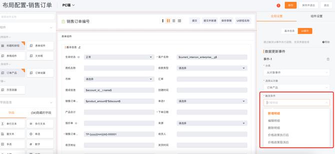 在销售订单对象下,数据更新事件-从对象事件-触发条件支持【价格政策执行后】【价格政策取消后】两个选项。