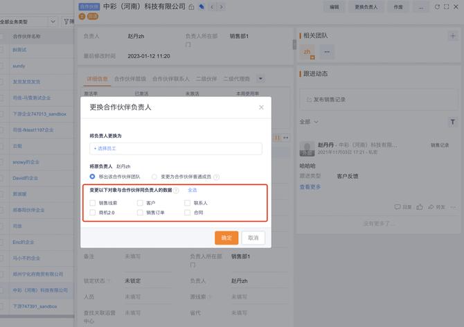 8.更换合作伙伴负责人时,可同步更换关联对象负责人