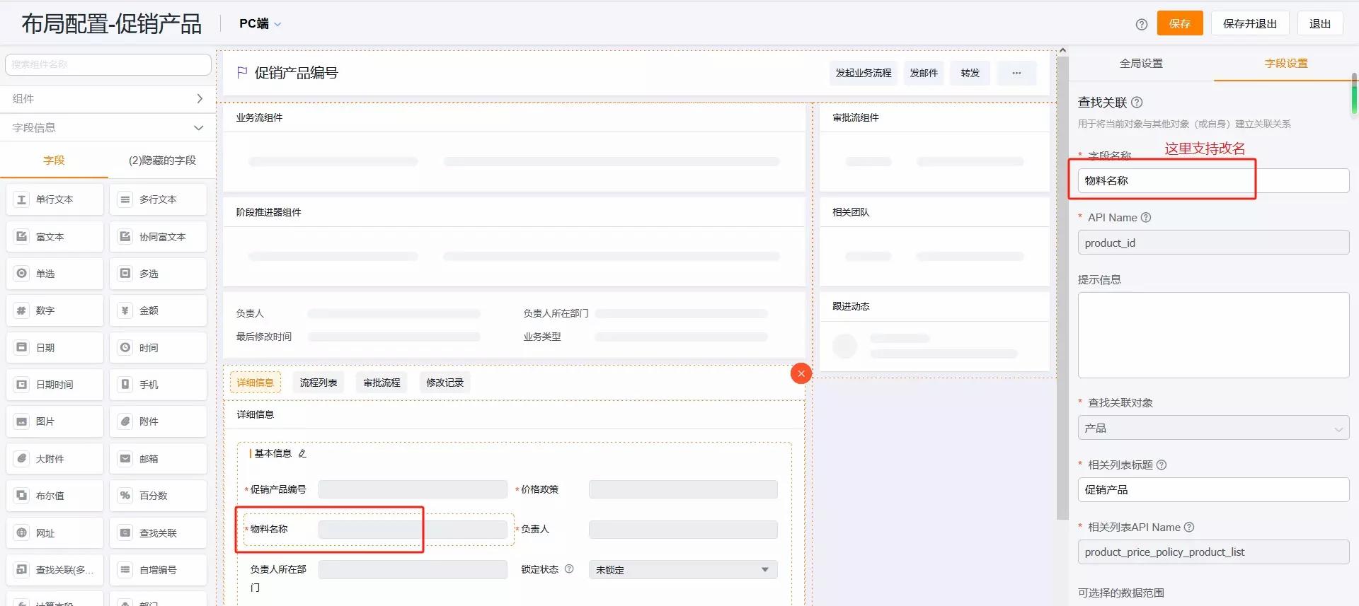3、【合作伙伴】对象详情页布局支持配置“树形组件”,预设一个“合作伙伴组织架构“组件
