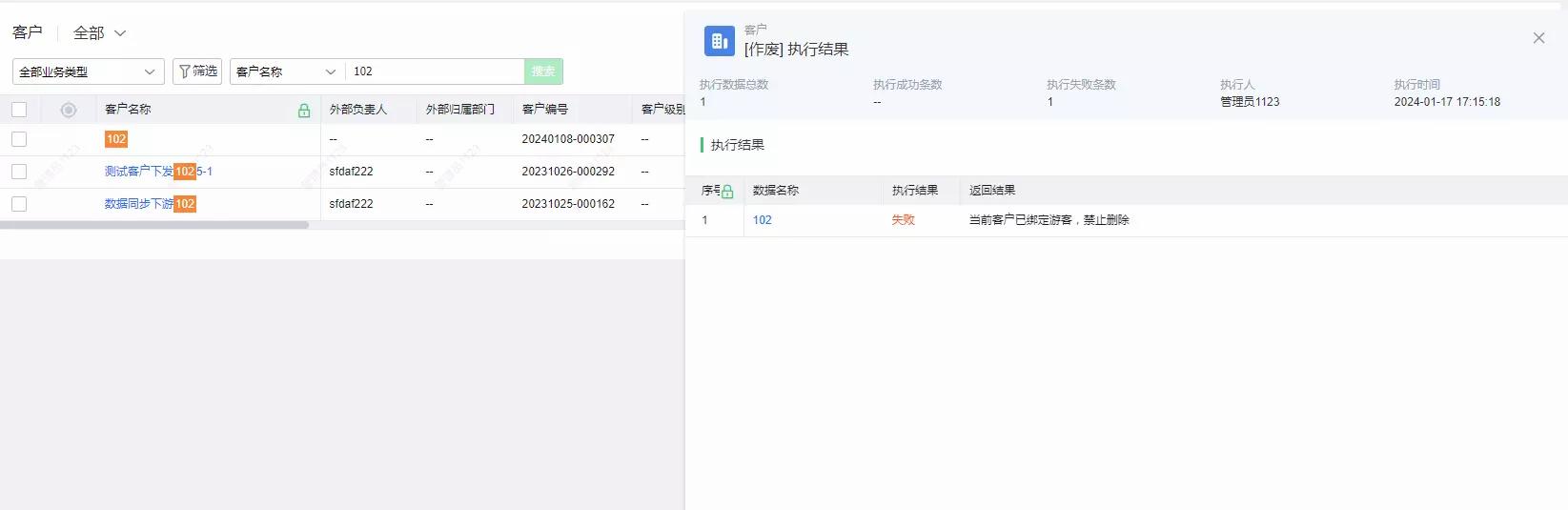 功能介绍:游客关联的客户作废时不支持删除