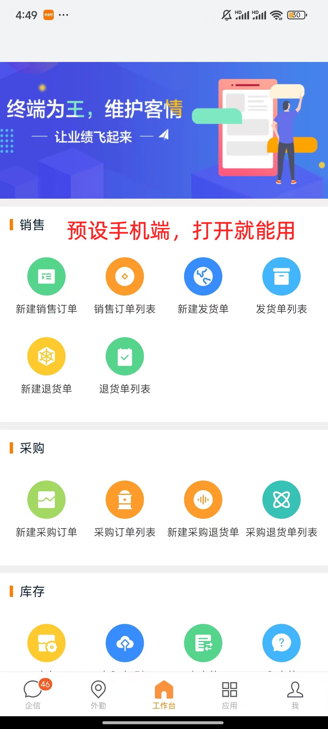 使用场景:快消经销商版盘点、采购、回款等业务升级