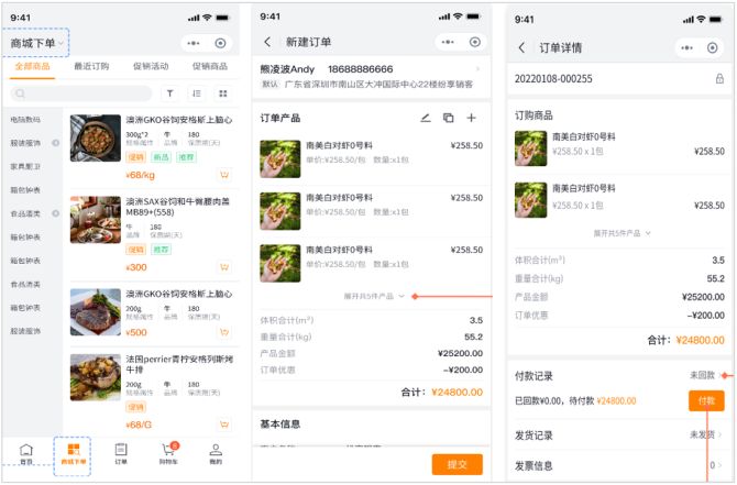 4.商城模式支持按订单类型、项目、合同等场景下单