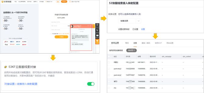 集成53快服客服工具,将53快服产生的线索信息同步到crm做后续跟进。