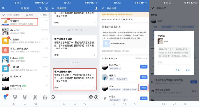 支持在营销通发送朋友圈推广任务到指定员工,由员工再进行确认发布企微朋友圈。