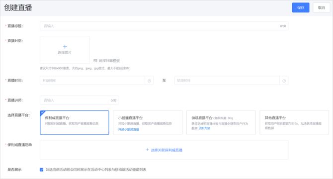新增保利威直播平台对接,支持关联保利威平台创建的直播,打通直播报名、观看回看、互动数据。