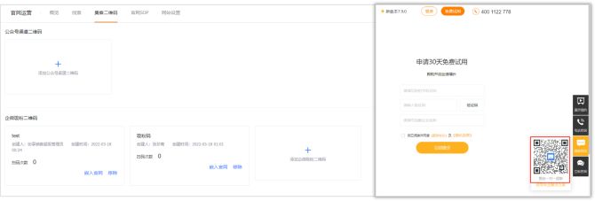 支持使用企微、公众号动态二维码,打通官网访客和粉丝,微信客户身份。