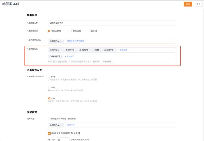 服务组支持按部门添加成员,动态识别部门新员工自动添加到服务组。