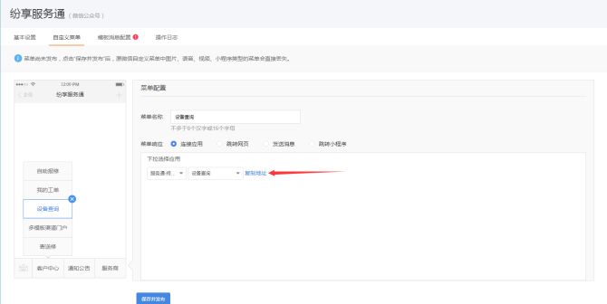 新增:公众号菜单管理中,跳转互联应用的设置时,支持复制应用地址。